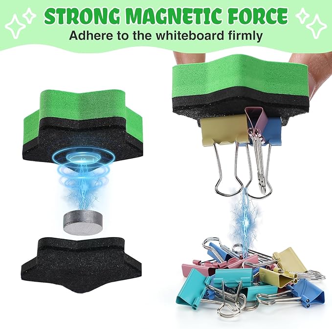 - Quickly Wipe Clean: The wiping surface of our star-shaped whiteboard erasers is very delicate and flat, just lightly wipe can quickly remove the writing and dirt on the magnetic whiteboard, leaving no traces, saving time and effort.