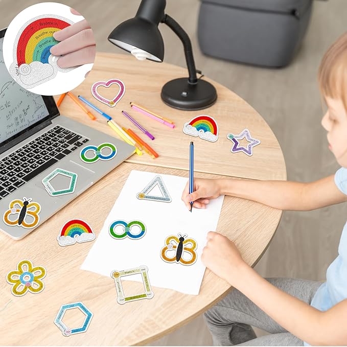 • Cute Patterns: the anxiety sensory stickers are designed with many cute patterns, including flower, hexagon, square, triangle, butterfly, heart, etc., vibrant and lovely, helping relieve tension and create a good mood for work or study