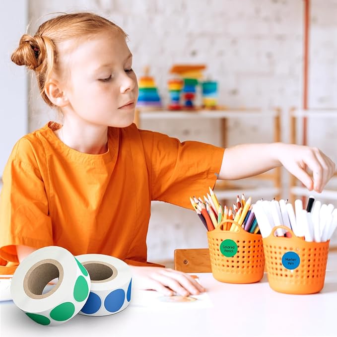 • Labels Size: 3/4 inch (1.9cm) in diameter. 6 different color rolls of small circle stickers. Each roll is 500 pcs of dot sticker colors. 3000 pcs color sticker dots or colored dots for your needs.