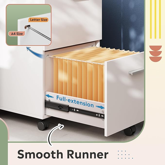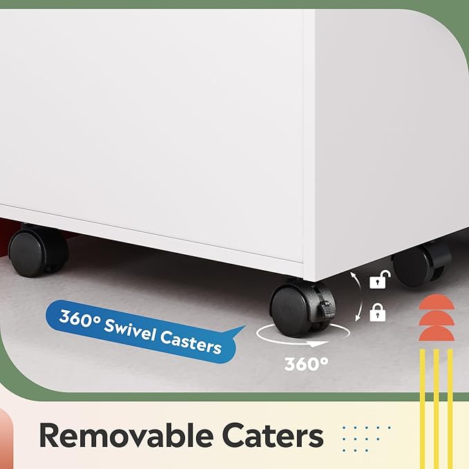 • 【Stability & Mobility】 The file cabinet is equipped with 5 casters for easy movement in your home office. The front two casters have built-in brakes to hold the cabinet in place, while the central anti-tip wheel prevents overturning and enhances stability.