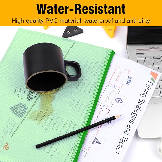 • HIGH-QUALITY MATERIAL: These mesh bags with zippers are made of PVC, are safe and durable, contents without worrying about being splashed with water. Protect your files from moisture, keep them flat and clear. Upgraded zipper, better quality