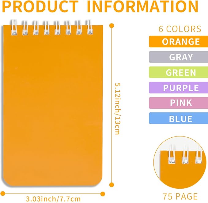 • 【 Pocket Notepad】Each Small Spiral Notebooks adopts top spiral binding, so the page can lay flat for a more comfortable writing condition for right won't hang up on clothes or backpacks, very thoughtful.