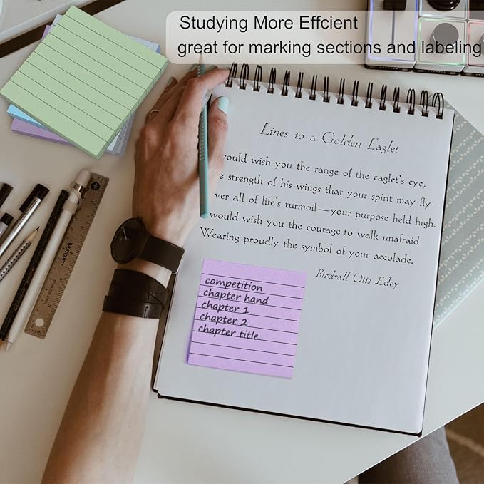 • MATERIAL: lined sticky notes are made of thick paper, which will not easily break, quality adhesive and quality paper ensure sheets stay on any surface without curling, not easily to fall off, and removes cleanly as well.