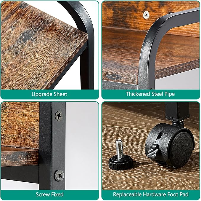 4 Tier Printer Stands, Printer Desk with Wheels, Multipurpose Office and Home Printer Stands, Shelving for Printers or Office for Fax Machines, Scanners, Printer carts for Office Vintage Brown