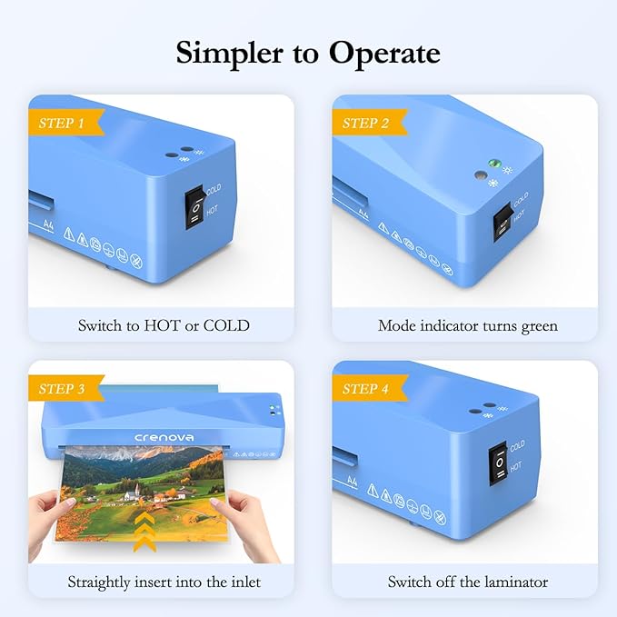 • ๐Ÿ†—COLD Mode: Specially designed for heat-sensitive materials, uses with self-adhesive pouches. You can use the cold system to laminate temperature-sensitive items.