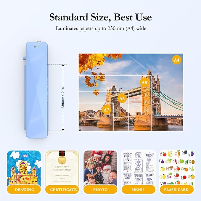 • ๐Ÿ†—Easy to Use: One press to auto laminate, fits for 2 x 80-125mic pouches