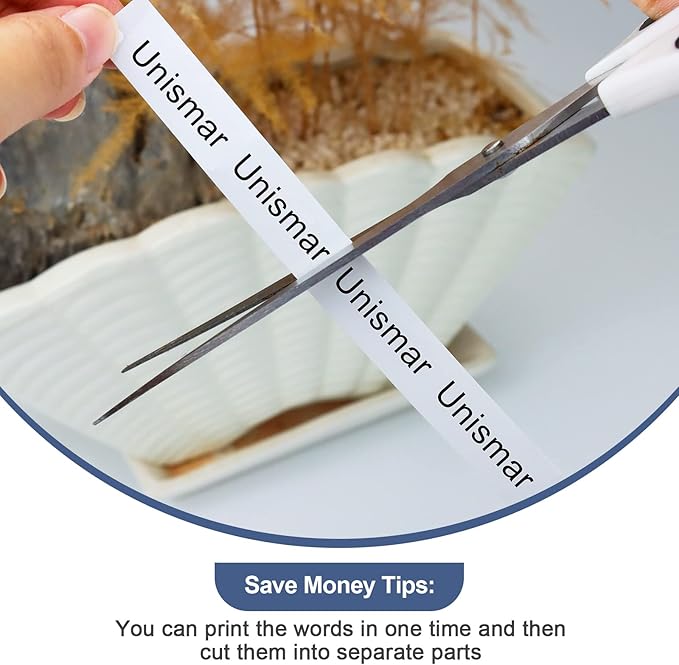 • You could print all the text you need together on one long label tape, then cut them into individual labels. You can use the tz tape 12mm 0.47 laminated white label your cabinets, storage boxes, files, kitchen items