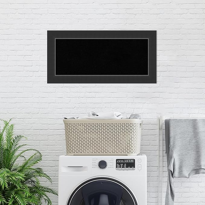 Amanti Art Black Cork Board for Wall, 17x35 Vision Board with Black Wood Frame, Medium Corkboard Office Decor for Home Organization, Modern Corkboard Pinboard to Display Items for Home Organization