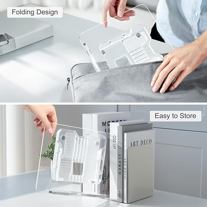 • Versatile and Convenient: This acrylic book stand offers 13 adjustable angles to accommodate various needs, making it suitable for iPads, books, smartphones, and more. It frees up your hands, making it ideal for students for reading, writing.