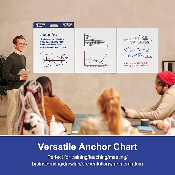 • 【Large Size Chart Paper】 Comix flip chart paper comes in a large size of 20 x 23 inches, 30 Sheets/Pad, 6 Pads/Pack, providing plenty of space for writing and drawing.