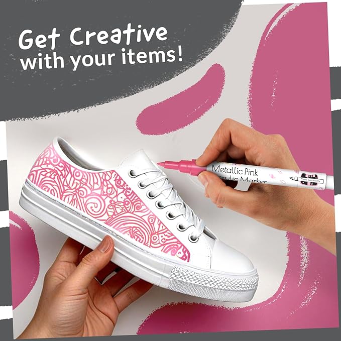 • Metallic Pink Marker - Enjoy creating art & craft projects on. Shoe, leather, furniture, clothing, sneaker, porcelain, polymer clay, kindness rocks, tire marker, pink paint for wood