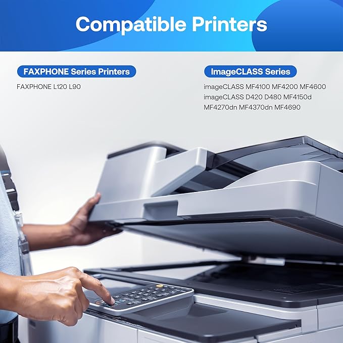 • Printer Compatibility: FAXPHONE L90, L120, LBP-2900, LBP-3000, ImageCLASS D420, D450, D480, MF4010, MF4012, MF4050, MF4100, MF4110, MF4120, MF4130, MF4140, MF4150, MF4270, MF4320d, MF4350d, MF4370dn, MF4690 Laser Printers.