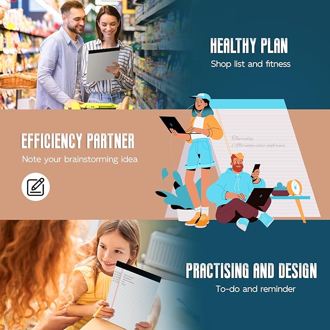 - 【Double-Sided Printing】The 8.5" x 11" writing pad is designed with double-sided printing, providing you with twice the writing space without wasting any paper. Each pad contains 30 sheets with 60 pages, there are 360 pages in total, giving you plenty of space to record your ideas and thoughts. Make the most of these legal pads to note brainstorming idea/ homework practicing/ shopping list, etc.