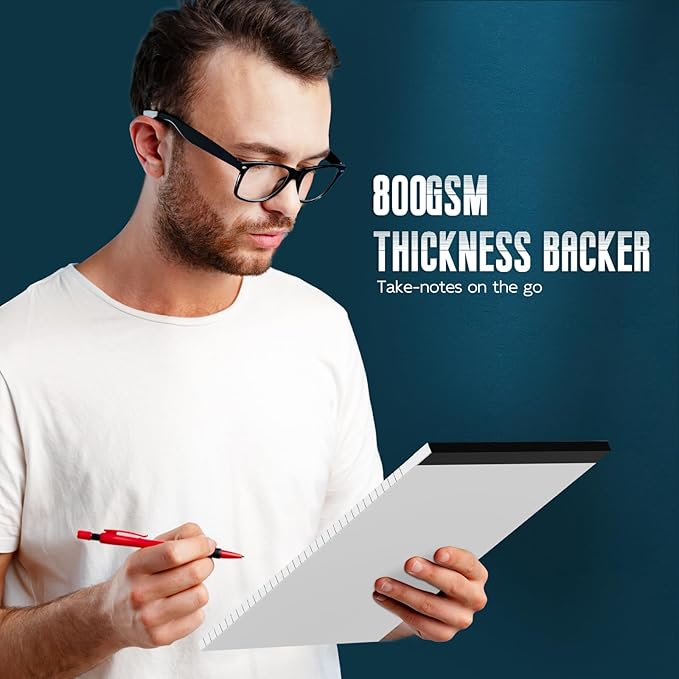 - 【Good Quality Legal Pads】The white legal pad 8.5"x 11" made of 70g paper material, thicker than average writing pads. Legal notepads 8.5"x 11" letter lined paper pads has black lines and double red margin lines on left, Sturdy white cardboard back allows you to hold the pad in your hand and write smoothly on the go, enjoy a smooth writing experience in everyday paper use and prevent ink from being left on the back or indented writing on the next sheet of paper. Suitable for a variety of pens.