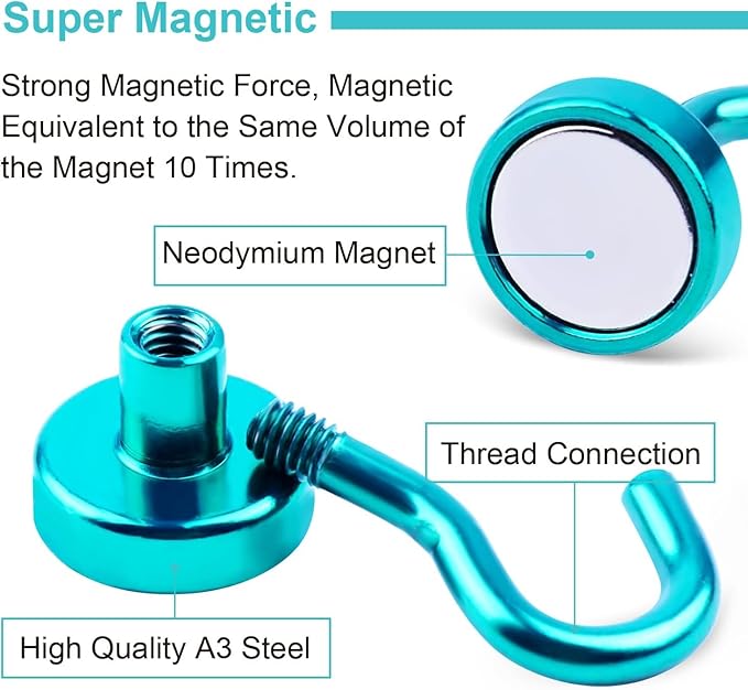 • 【Industrial Grade】Strong magnetic hooks are made of high grade and exquisite quality rare earth neodymium magnet and steel. Compact and lightweight with strong force, which can be strongly attracted by iron, nickel and other ferromagnetic material