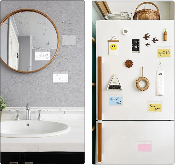 • Multi-Purpose Functionality: Perfect for labeling, organizing, or storing cards, tags, labels, or photos, the clear adhesive pockets effectively protect against fingerprints, water, dust, or dirt, making them suitable for various settings such as home, office, shops, or libraries.