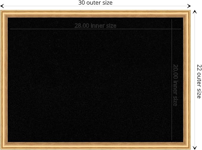 • DIMENSIONS: The overall size of this framed corkboard measures 30 in. x 22 in., including the frame. Its functional cork board area measures 28 in. x 20 in.
