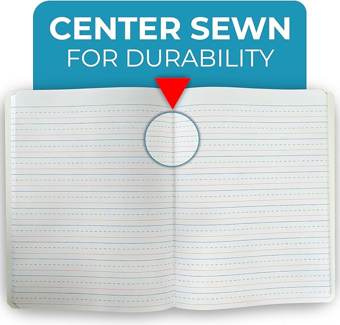 - CENTRAL SEWN BINDING: Our primary composition notebooks have sewn binding, ensuring the pages are securely held together. This feature increases durability, especially when the notebook is frequently handled by young students.