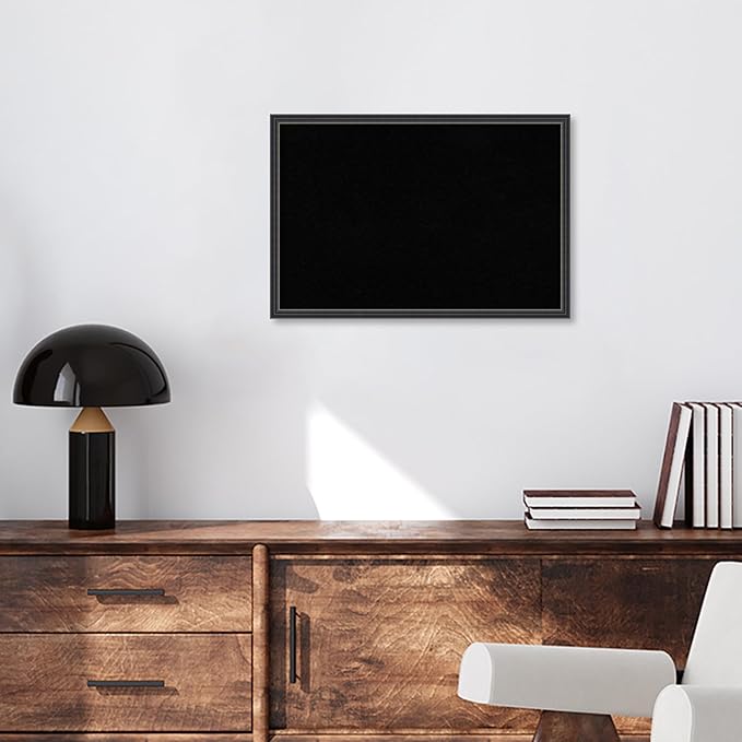 Amanti Art Black Cork Board for Wall, 17x25 Vision Board with Black Wood Frame, Medium Corkboard Office Decor for Home Organization, Traditional Corkboard Pinboard to Display Items for Home