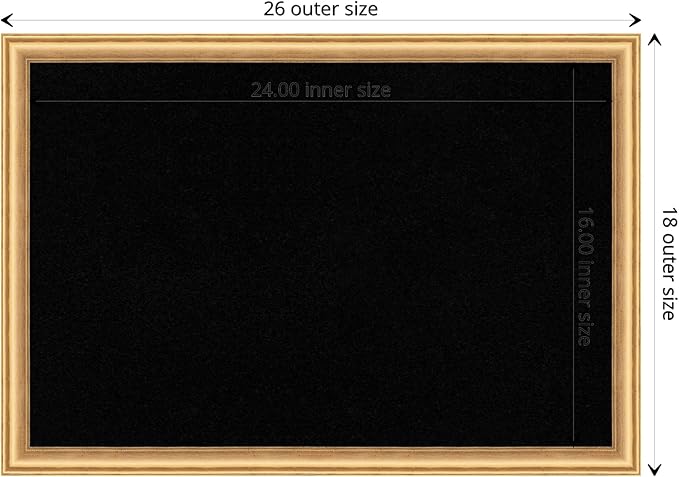 • DIMENSIONS: The overall size of this framed corkboard measures 26 in. x 18 in., including the frame. Its functional cork board area measures 24 in. x 16 in.