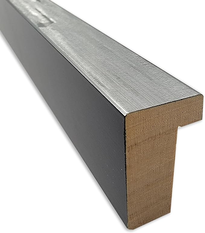 • 100% REAL WOOD FRAME DETAILS: The Imprint Silver Frame is a shiny metallic silver frame with a unique repeating imprinted pattern almost like a fingerprint with straightened lines. The frame is 0.75 in. wide and stands 1.25 in. off the wall.