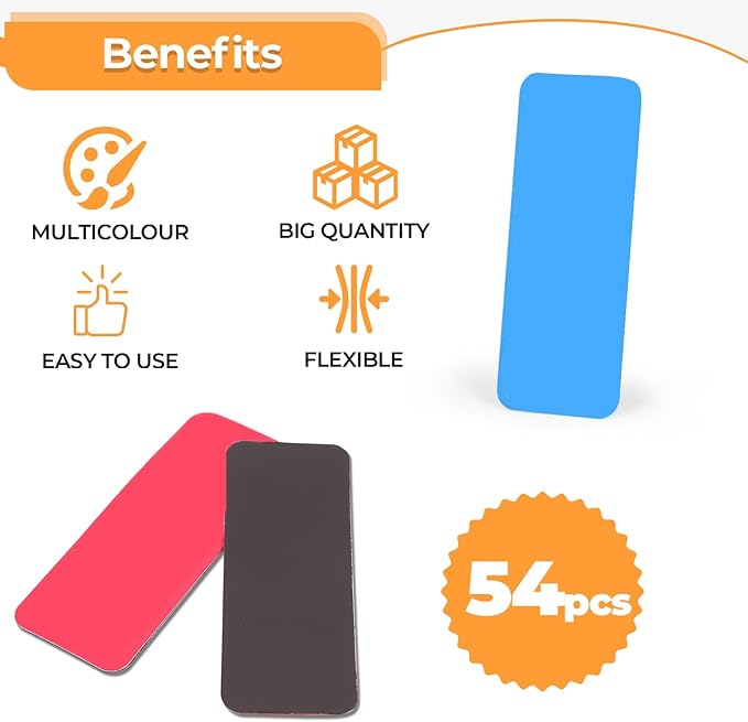 54pcs Magnetic Dry Erase Labels 9 Colorful Name Tags Flexible Reusable Magnetic Label Stickers for White Board Refrigerator Locker Size 3.2"x1.2" by Mositear