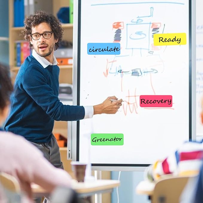 • [PACKAGE INCLUDES] - 54 Per Pack, 3.2 X 1.2 Inches, dry erase sticky notes comes with 9colors.