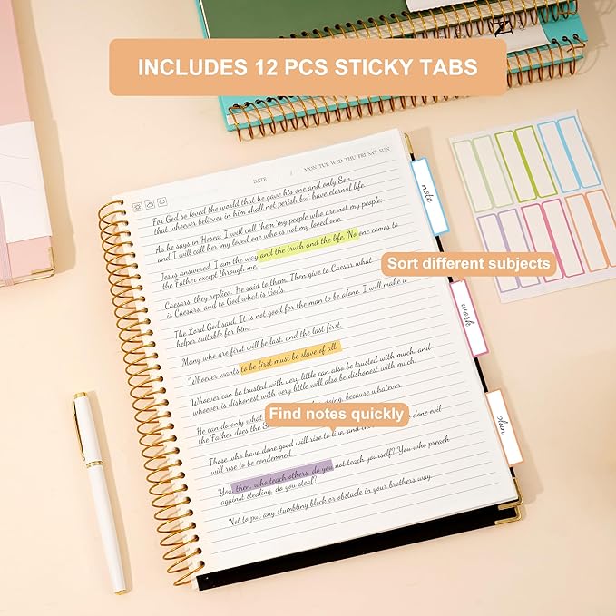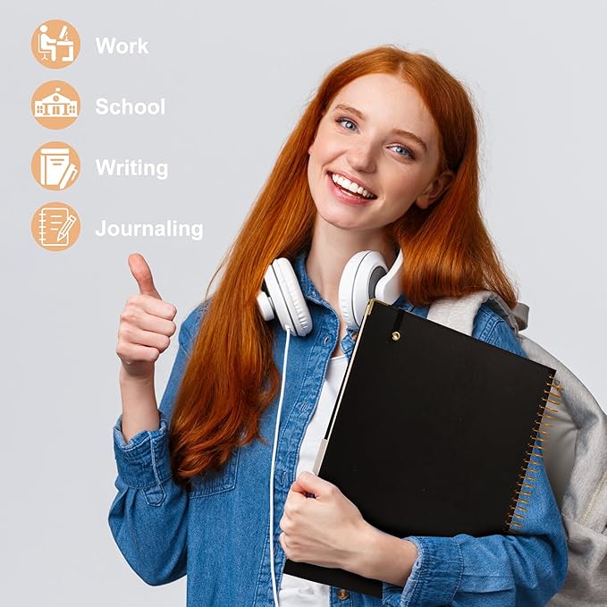 - Strong Spiral Binding& Lay Flat: The hardcover spiral notebook is very sturdy with a pretty golden spiral. Well positioned spiral binding so pages open flat with ease, ensuring that the pages turn smoothly and are organized. Match the gold corner protectors to be attractive as well as practical. Lasting all year around, fantastic work or school supplies