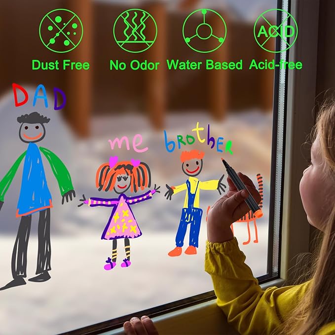 • Wet Erase:These non-toxic, water-based chalk markers can be erased easily by wiping the area with a damp cloth or paper towel making all paint to disappear without smudging or streaking.