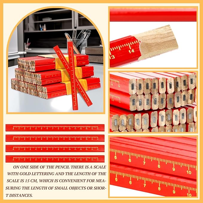 • Package includes 60 pcs carpenter pencils.The quantity is enough to meet your fast consumption.These woodwork pens are professional tools for scribing on wood or some rough surfaces.