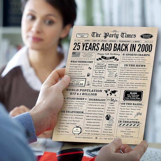 25th Birthday Card, 25th Birthday Decorations for Her Him, 25th Birthday Gifts for Daughter Son, Back in 2000 Birthday Card