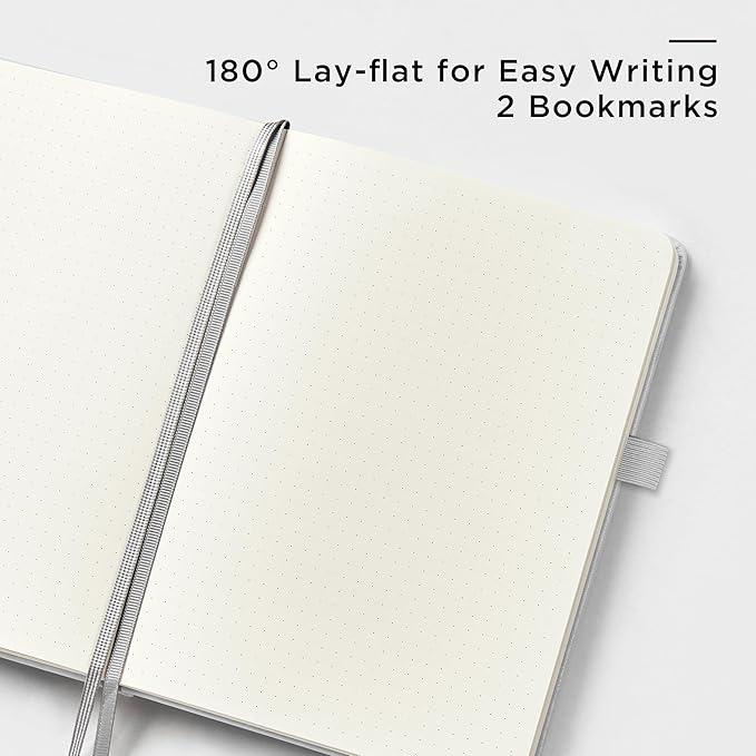 • 180° LAY-FLAT DESIGN: The lay-flat design allows for easy writing and ensures that you can utilize every page efficiently. Journaling, note-taking and planning has never been easier! 2 Bookmarks to help you find important content faster