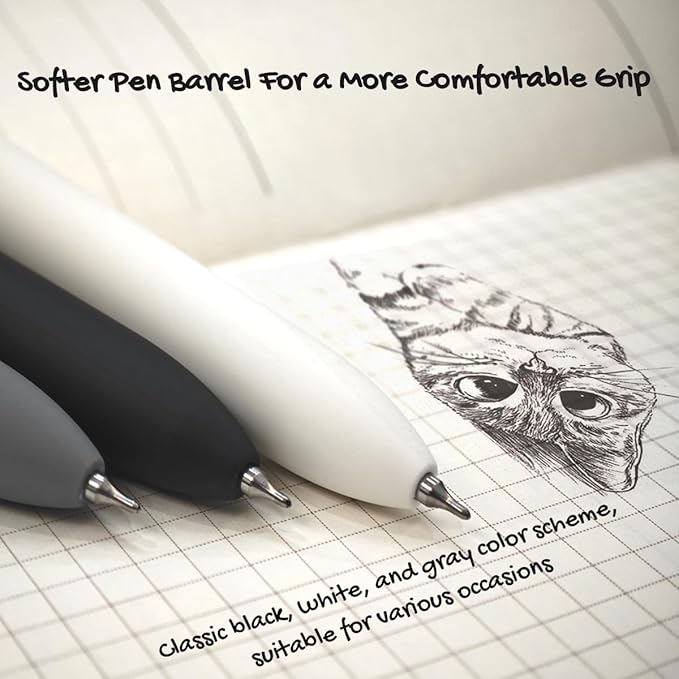- Precision Fine Point & Universal Suitability:Featuring a 0.5mm black ink rollerball, our gel pens provide precision and clarity.with a small metal ball on the clip, our pen leaves smaller marks compared to others, catering to fidgeters while embracing aesthetics.the black, white, and gray color scheme allows for versatile use in various settings.ideal for nurse essentials, healthcare professionals, students, and office workers