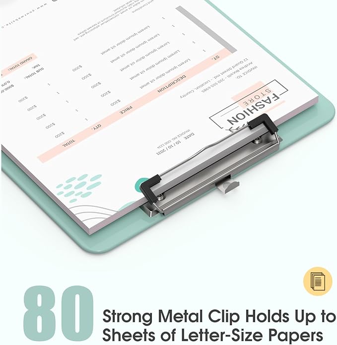 • Easily Stackable: The Color Clipboard use low profile clip of our plastic clipboards makes the bulk clipboards easy to stack. Sturdy metal clip to hold up to 80 letter size / A4 size pages easily and securely in place