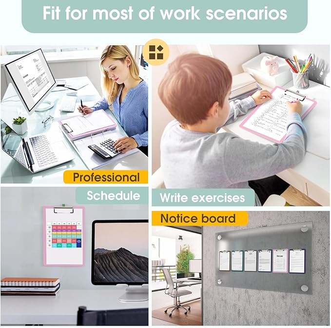 • Strong Plastic Clipboard: Our clip board is made of strong and high-quality plastic material, Making them very strong, Not easy to break, Clipboards with high-gloss surface and sturdy base. Cleanable and waterproof