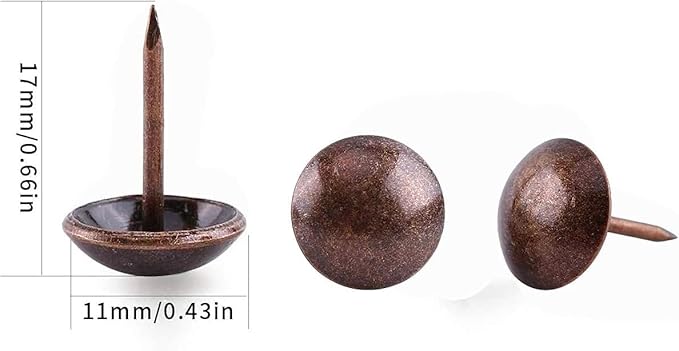• ★Dimensions and quantities: diameter of upholstery nails head - 11 mm, total length of upholstery nails - 17 mm, quantity - 500 pieces, color - Red.