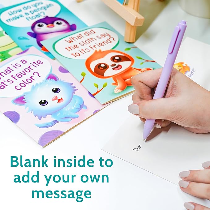 - CARDS YOU’LL BE EXCITED TO SEND - Forget bland, generic cards! With adorable animals, funny jokes, and durable cardstock, you’ll love choosing just the right card for each recipient. Imagine their smiles and chuckles when they open the card! Whether slipped into lunchboxes or care packages, or sent on their own, these colorful, funny cards turn everyday moments into delightful surprises and bring people closer together.