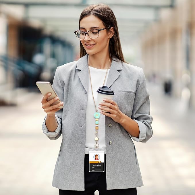 - Safe and Durable Material: Quprofa badge lanyards are made of high-quality black or gold satin nylon ropes, the material is soft, smooth and comfortable to touch;The silicone beads and ABS Card Holders are strong, lightweight, safe and skin-friendly;The transparent ID Holders are made of high-quality PVC material, which are waterproof and wear-resistant