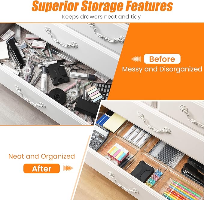 - Space-Saving: Maximize your space and keep your drawers neat with this versatile set, save your time to organize and find your stuff. When you're not using it Stack these storage boxes together so that you can save maximum space