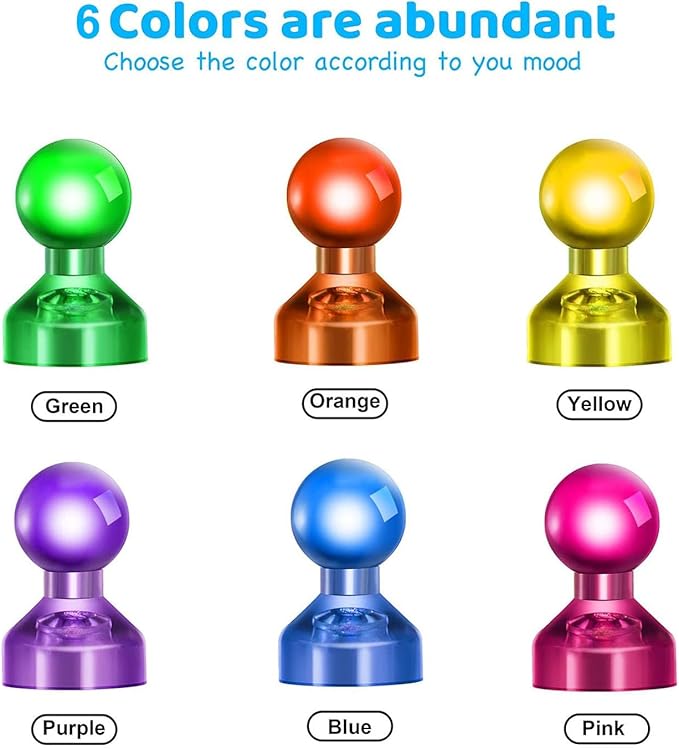 60 PCS Colorful Strong Magnetic Push Pin Magnets, Office Classroom Magnets,6 Assorted Color, Perfect to use as Kitchen Home and School, Map Magnets,Whiteboard Magnets
