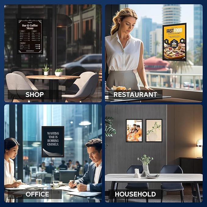 • 💡Versatile Frame:Home Walls and Refrigerators: Children's Artwork, Menu Plans, School Schedules, Schools, Offices: Stick Important Messages on Doors, Walls, Windows, Store or Supermarket Windows: Stick on Transparent Showcases, Display New Arrivals or Specials, etc