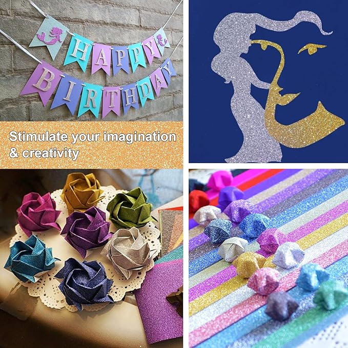 • Solid Material: 250 gsm construction glitter paper is easy to cut, fold and glue into a variety of shapes. This glitter stock paper felt like smooth sandpaper and the glitter are not easy to peel off