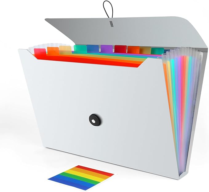 • 【COLORFUL DESIGN】Our expandable file folder features rainbow-colored inner pages and small colored labels for easy classification, making it both functional and visually appealing