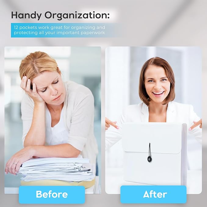 • 【LARGE CAPACITY】With 13 individual pockets and a maximum capacity of 350 sheets of paper, our paper organizer folder is perfect for keeping all your important documents organized and easily accessible.