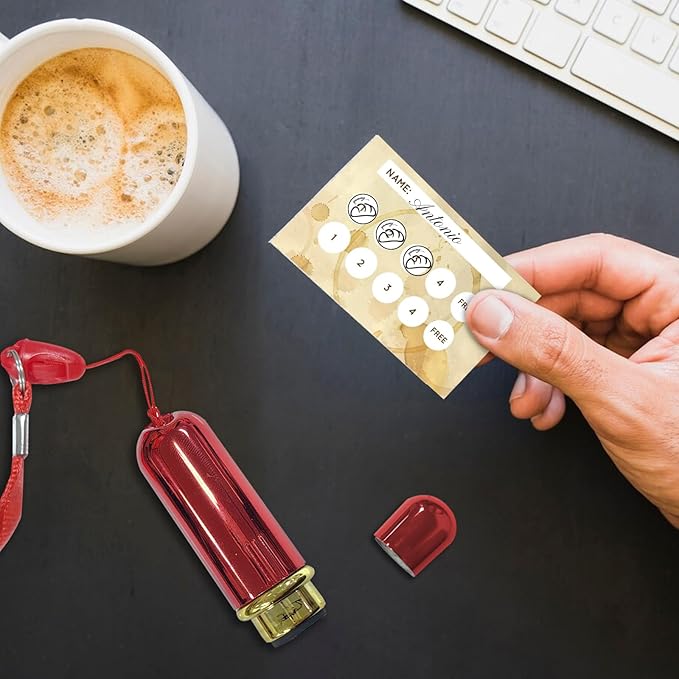 - Perfect Design, Compact, And Convenient: Our loyalty card stamps have an oval appearance, which is both stylish and convenient. The stamp comes with a strap for easy carrying, perfect for use on the go. The high-quality ink ensures the longevity of the stamp and is available in black, blue, red, and purple to provide you with a variety of choices.