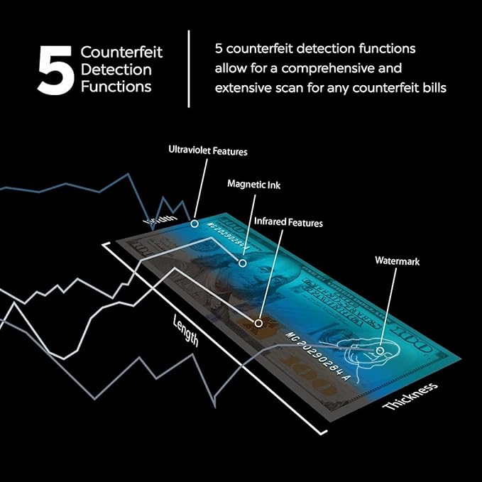 • Enhanced Security: This bundle reduces the risk of accepting counterfeit bills by combining advanced machine detection with portable pens, offering a robust defense against fraud.