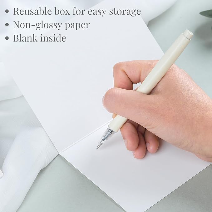 - High-quality Cardstock: Our beautifully designed gold foil congratulations cards with envelopes are with solid and great quality. Each congratulations card is printed on 300 gsm thick card stock. There is no smudging or fingerprints with any type of pen on this non-glossy paper. All greeting cards come in a durable and reusable box for easy storage.