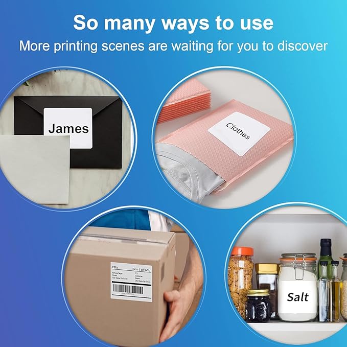 • Easy to Peel & White Matte : High quality blank white labels stickers provide clear and easy-to-read printing, you will find labels produces sharp text and rich colors, not fade. The matte surface allows you to easily distinguish the front and back. Easy to peel off design, just bend the corner of the paper slightly to peel off the label, and then stick the label on the surface you want to mark.