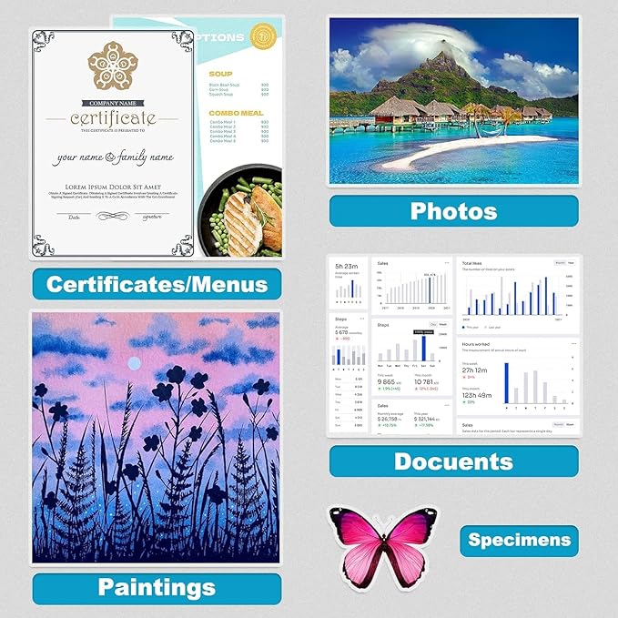 • 【Wide Application】: The laminate paper is great for protecting and preserving documents, photos, menus, recipe cards, certificates, children's artwork and more.