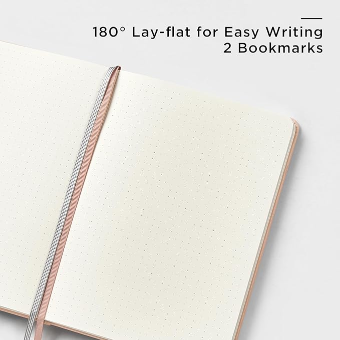 • 180° LAY-FLAT DESIGN: The lay-flat design allows for easy writing and ensures that you can utilize every page efficiently. Journaling, note-taking and planning has never been easier! 2 Bookmarks to help you find important content faster